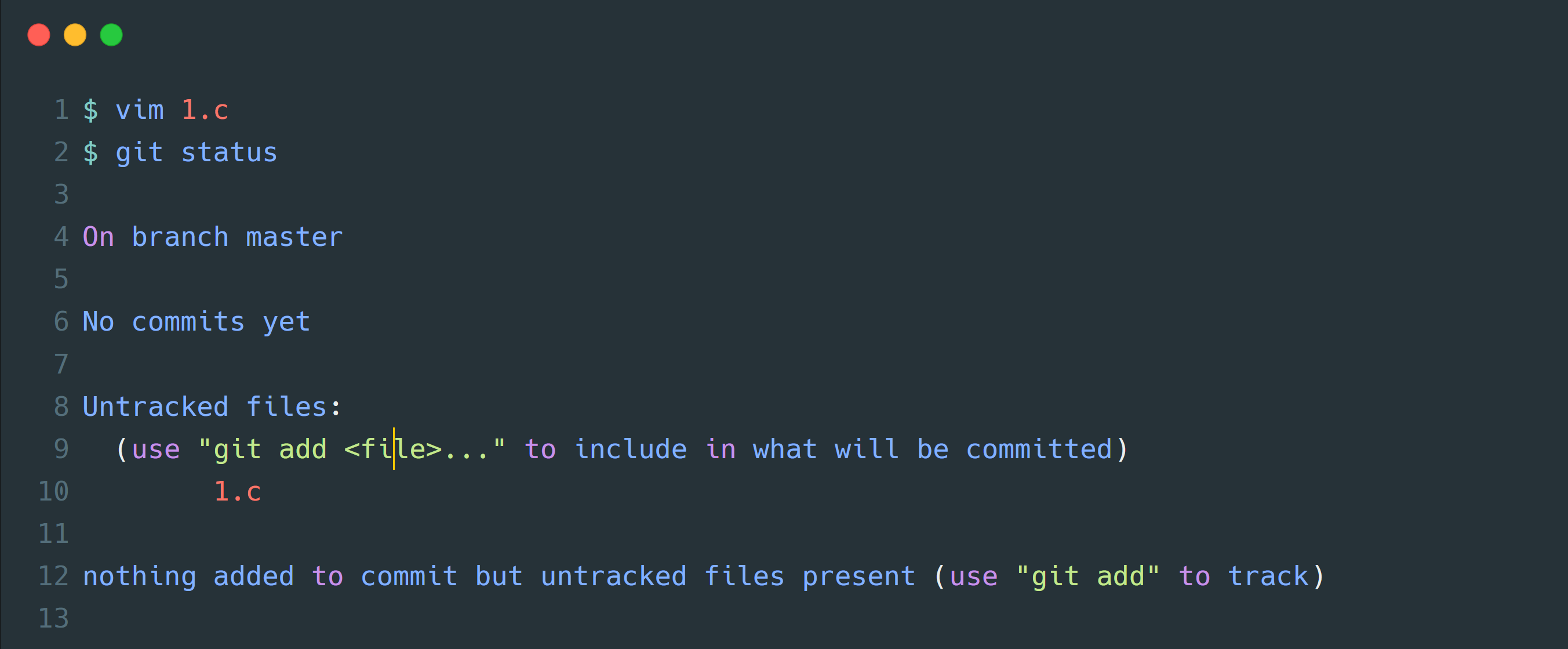 - 直接输入git commit,这种方式会启动文本编辑器以便输入本次提交的说明,编辑器是Vim