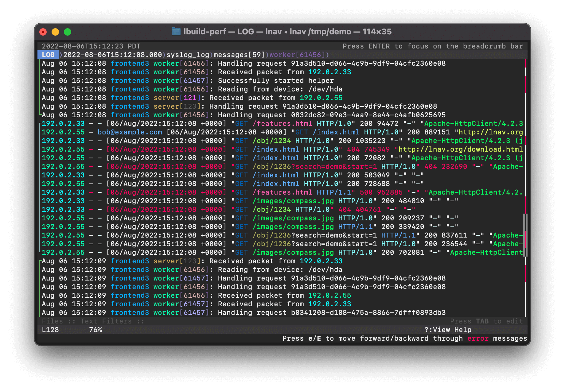 可以通过彩色的终端输出更好的分析调试(需要终端的彩色配置)