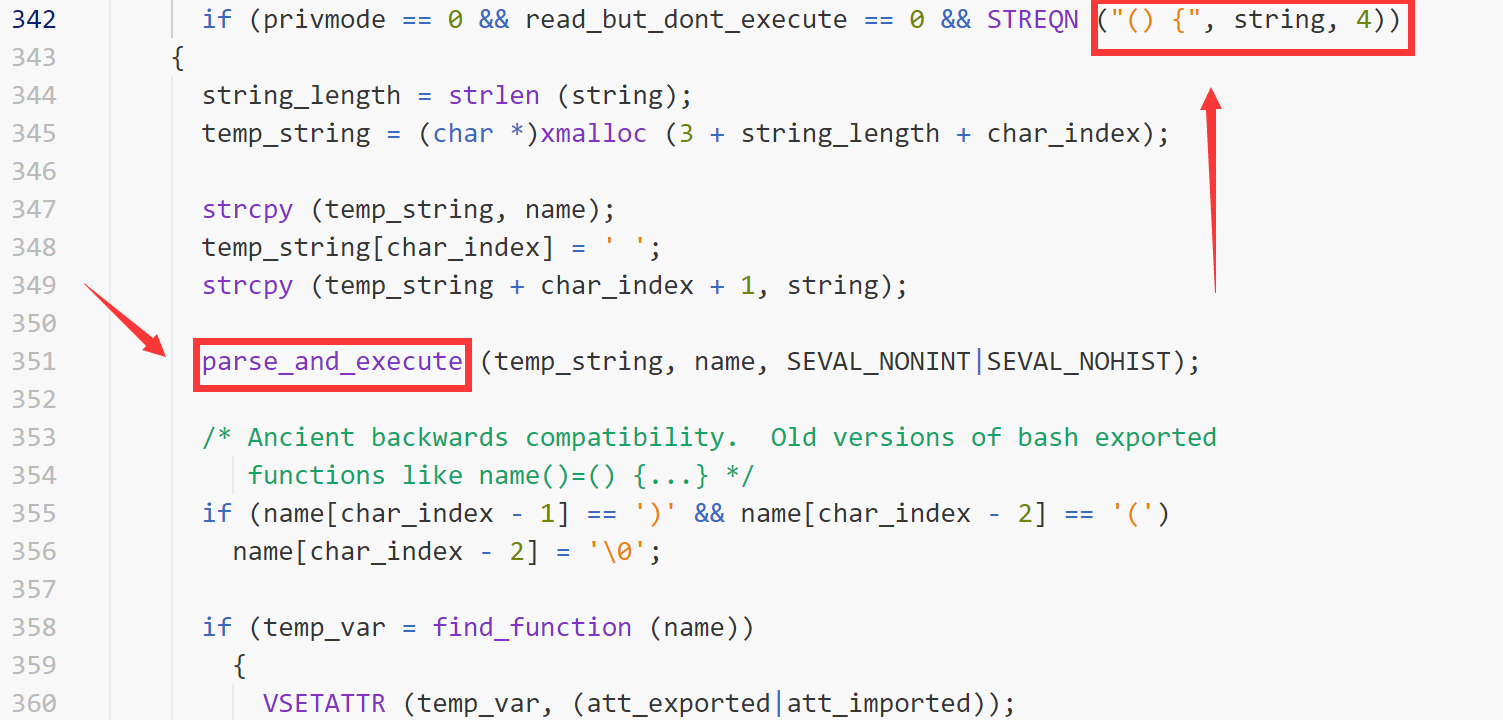 如果字符串是一个函数定义,那么该函数将只解析它,而不执行它。如果字符串包含一个 shell 命令,那么该函数将执行它;倘若该环境变量字符串包含多个用分号;隔开的shell命令,parse_and_execute函数会执行每一条命令