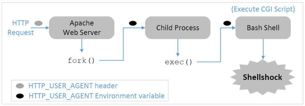 为了在基于 bash 的 CGI 程序中利用 shellshock漏洞,攻击者需要将他们的数据传递给易受攻击的 bash 程序,并且数据需要通过一个环境变量传递